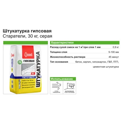 Особенность продукта – регулирование уровня влажности в помещении. Это свойство позволяет постоянно поддерживать в комнате комфортный микроклимат. Состав устойчив к образованию трещин.